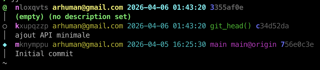 jj commit -m "ajout API minimale"